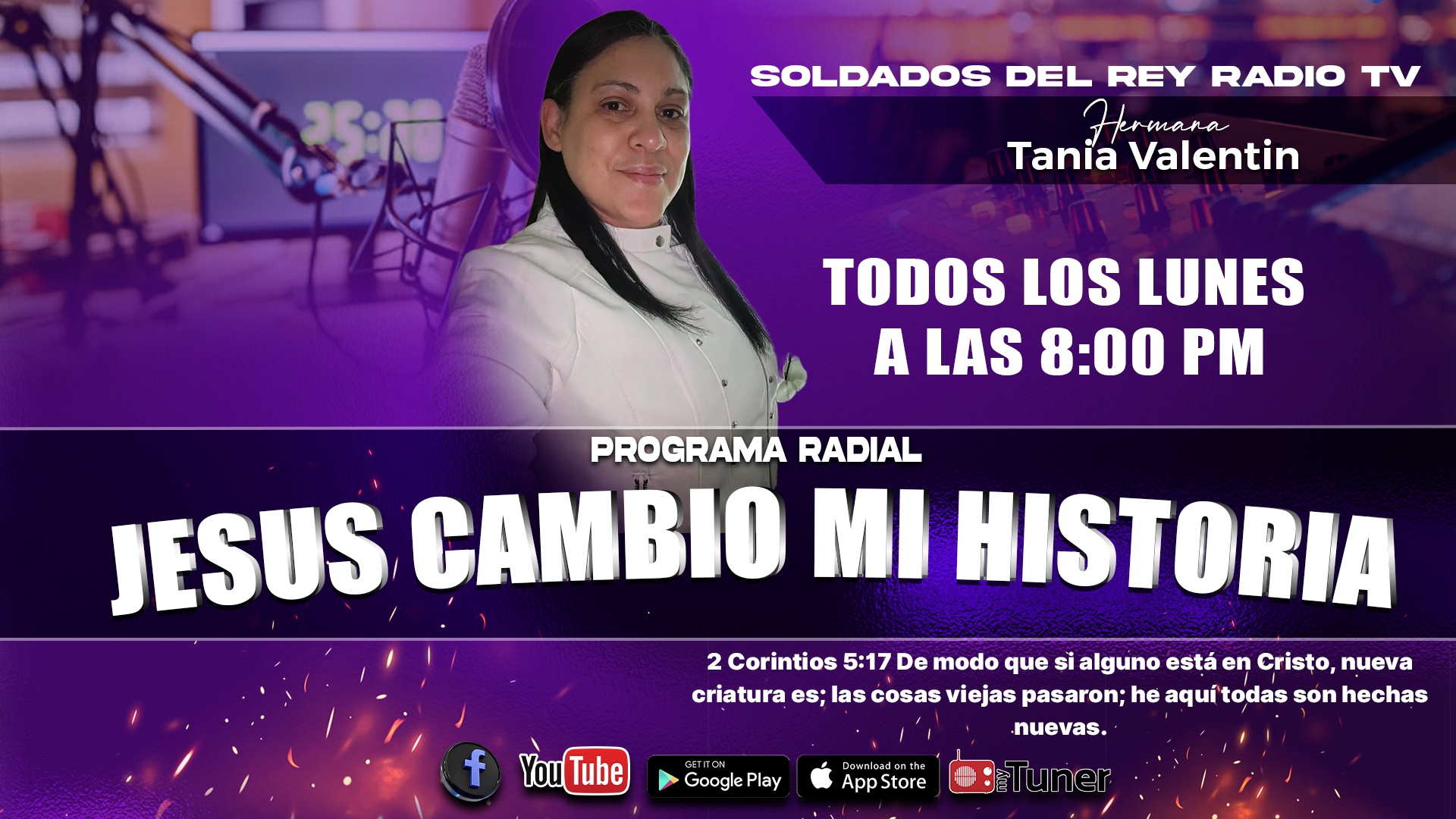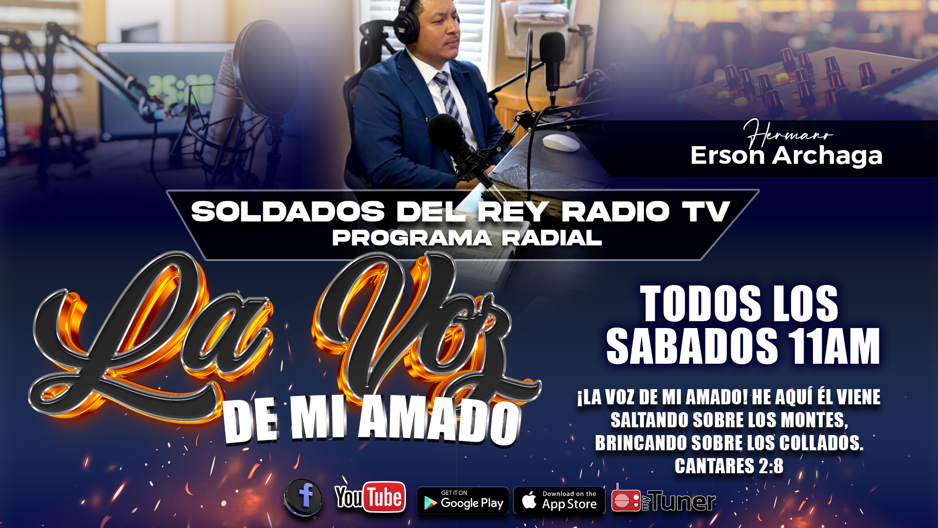 Soldados del Rey Radio TV es un ministerio radial y digital que nace por un llamado de Dios con el propósito de llevar el mensaje de Jesucristo a través de los medios de comunicación.